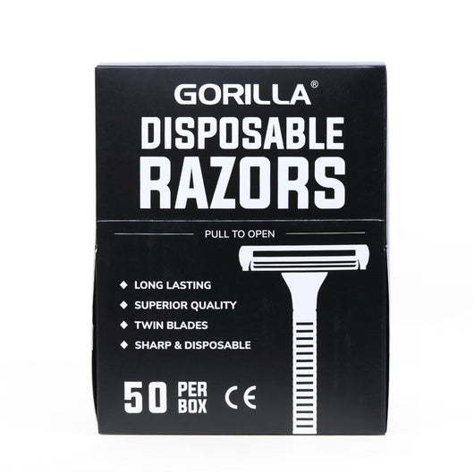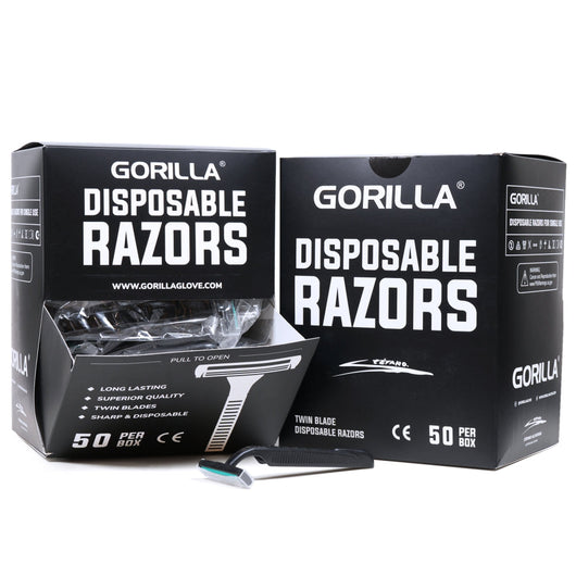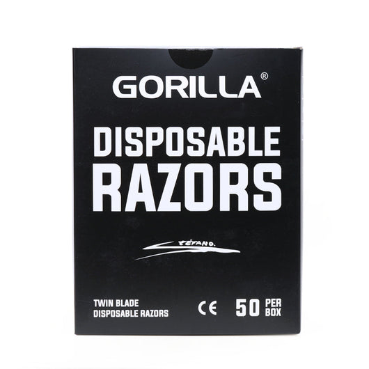 Prep skin before a tattoo or piercing procedure by removing body hair with Gorilla's new black twin blade razors. With a plastic grip handle and a fixed head, these razors provide an easy and effective way for a close shave to have a smooth and clean work surface before a stencil application.