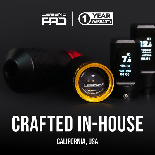 Liner: Specifically engineered as the hardest hitting machine we have and professionally-tailored to those looking for an extreme amount of torque and precision. The Legend Pro Liner is designed with a 5.0mm stroke and is crafted for single passes on bold, solid lines, using any needle sizes above 7RL. The Liner is also great for specific tattoo styles, including: Traditional, Neo-Traditional, Ornamental, and Tribal.
